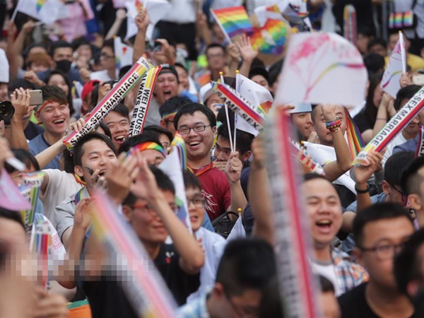 臺灣“中央社”5月24日報道,臺灣地區同婚“釋憲案”,“大法官”今天做出釋字第748號解釋。“司法院”秘書長呂太郎說,“大法官”認為現行法令未保障同性婚姻、“違憲”,要求主管機關在公告后2年內,修改相關法律。