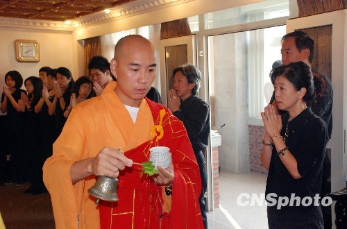 10月19日,臺灣“神探”莊亨岱落葉歸根,其靈骨在其親友的護送下安奉泉州市清源山莊氏碩園祖祠墓園。本次從臺灣護送莊先生靈骨歸鄉的臺灣親屬有18人,還有一些莊亨岱生前的臺灣好友也自發坐飛機趕來為莊先生送行。“父親落葉歸根,回到了生他養他的故鄉。”其大女兒莊乃瑞為父親魂歸故里祈禱。 中新社發 傅丹丹 攝