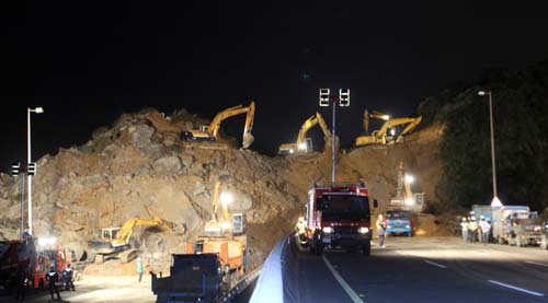山崩災情,造成臺灣高速公路基隆段南北向交通中斷,由于掩埋路段近300米,且有目擊者指有3輛小客車可能不幸遭掩埋,臺灣軍警消防據報均派人車趕來救援。臺當局“行政院副院長”朱立倫視察時指示相關單位全力搶救。【詳細】