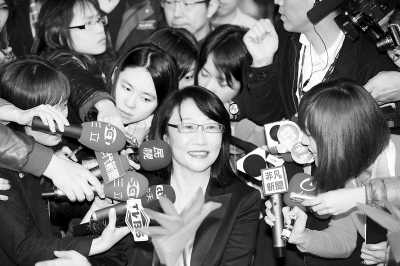 1月15日晚,王永慶之女、宏達電(HTC)董事長王雪紅在臺北出席HTC年終尾牙,受到大批記者追訪。她接受采訪時說,馬英九的當選顯示臺灣民眾對兩岸和平的重視,希望未來以和平為基礎,能重新再出發,為臺灣打拼。董會峰攝(中新社發)