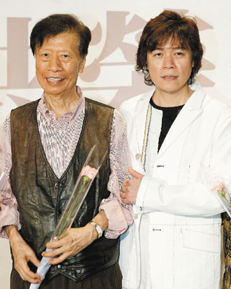 洪一峰(左)和洪榮宏父子情深,四年前洪一峰曾到兒子的演唱會記者會上打氣,當時他已有心臟疾病。圖/本報數(shù)據(jù)照片