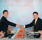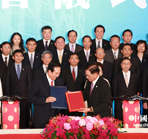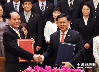 | 海協會會長陳德銘與臺灣海基會董事長林中森21日下午2時許在上海簽署了《海峽兩岸服務貿易協議》及其附件,這是兩岸兩會自2008年6月恢復制度性協商以來簽署的第19項協議。 |
