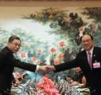 | 6月20日下午,海協會常務副會長鄭立中與臺灣海基會副董事長高孔廉,在上海進行兩會第九次會談預備性磋商,就海峽兩岸服務貿易協議簽署達成一致,為明天正式會談做最后準備。