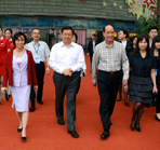 | 20日下午,海協會會長陳德銘夫婦與海基會董事長林中森夫婦一起在滬參觀了上海電影博物館與東方明珠。他們在參觀中嘗試電影配音、體驗攝影棚錄像,并詳細了解了上海的歷史發展。 |