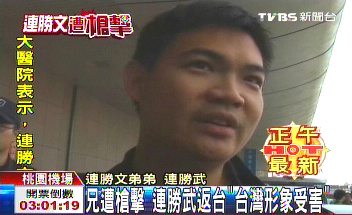 中國臺灣網11月27日消息 據臺灣“中央社”報道,國民黨榮譽主席連戰之子、國民黨中央委員連勝文26日晚遭槍擊,連勝文的弟弟連勝武27日中午搭機返臺。連勝武表示,發生這種事情傷害了臺灣的形象,也破壞臺灣民眾長年所做出的努力。