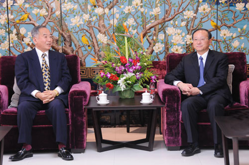 1月18日,國家旅游局局長、海峽兩岸旅游交流協會會長邵琪偉在京會見了臺灣觀光協會會長周慶雄。