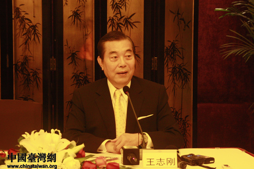 在17日下午舉行的重慶臺灣名品展媒體見面會上,臺北世界貿易中心董事長王志剛向兩岸媒體記者介紹情況(中國臺灣網 程軼文攝)