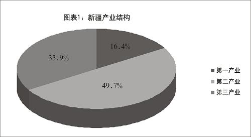 ——經濟結構逐漸優化。近年來,新疆工業、農業和第三產業均保持快速發展。工業化進程加快,工業取代農業成為主要產業。第三產業在經濟發展中的作用突出,批發、零售貿易和餐飲業發展迅速,郵電通信網絡快速普及,房地產、金融等新興行業快速發展。2008年,一、二、三產業占地區生產總值的比重分別為16.4%、49.7%、33.9%。