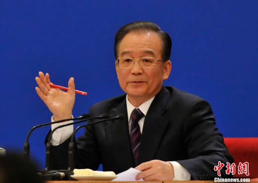 3月14日,國務(wù)院總理溫家寶在北京人民大會堂與中外記者見面,并回答記者提問。中新網(wǎng)記者 楊磊攝