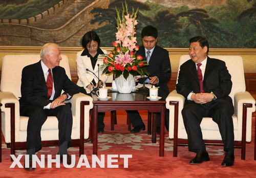 2007年12月5日下午,中共中央政治局常委、書記處書記習(xí)近平在人民大會堂會見了來訪的美國前總統(tǒng)卡特。