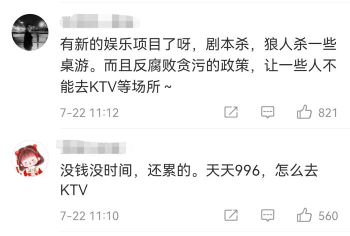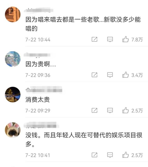 圖為話題#為什么現在人們去KTV少了#網友討論截圖 。