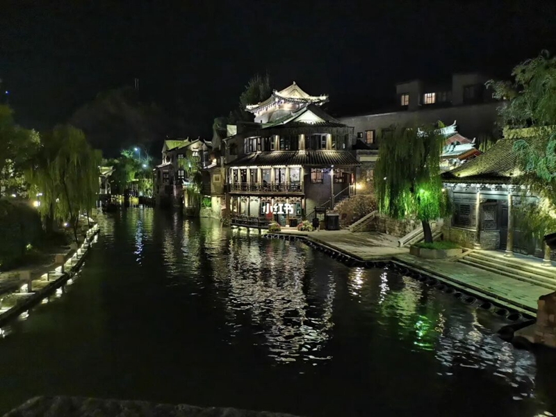 天邊是華麗的朱紅,遙遠(yuǎn)的地方已有些深藍(lán),提著燈籠在人流中穿行,一步步的注視著夜色降臨。行人都集中到一處去了,廣場(chǎng)上音樂響著,街道兩旁商鋪更是熱鬧的很。但這樣的喧囂只是一時(shí)的,但天黑透時(shí),游人便稀疏了起來。走在安靜的石板街,一晚月圓照弄堂,夜色里籠罩的是陳年的古巷。白日喧鬧的戲園不聲不響,空蕩蕩的上鎖了廂房。又與那老樹重逢了,白月光下他愈發(fā)的滄桑和沉穩(wěn),更是多了幾分古韻。過路的行人注視著他,不覺停住了腳步,他有力的枝干撐著夜色的天空,鳥兒縮在他茂密的葉片間,像是被一位慈祥的祖父守護(hù)著。