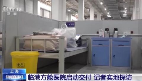 總臺記者 王殿甲:我們可以看到,這里的生活物資都已經擺放在了每個床位上,包括這里有洗漱用品、拖鞋、臉盆、毛巾等等。桌上還有一個臺燈,以及呼叫急救(醫療)人員的按鈴,那么考慮到臨港的天氣比較潮濕陰冷,在每個床(位)上還多加了一床被子。