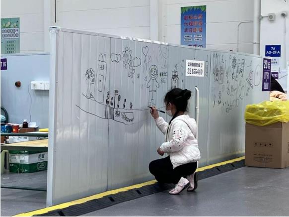 4月16日下午剛進入臨港方艙時,看到方艙內井井有條,有充足的物資補給,還有“大白”們的親切和熱情,我的疑慮消失了。仔細看“大白”們身上的字,發現他(她)們來自浙江。感謝浙江“大白”們的無私奉獻和手足情深!