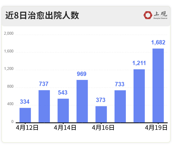 4月19日,1682名確診病例治愈出院,25411名無癥狀感染者解除集中隔離醫學觀察。