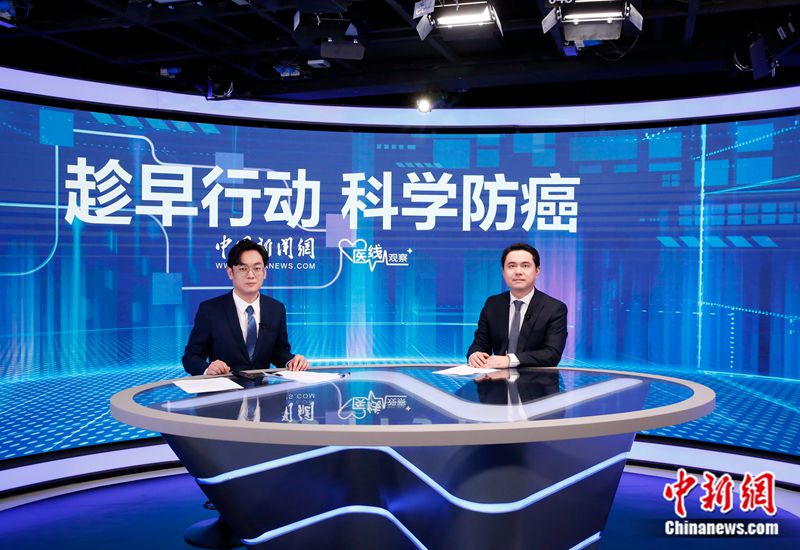 北京大學(xué)第一醫(yī)院泌尿外科主任醫(yī)師張騫接受中新網(wǎng)視頻訪談,右為張騫。中新網(wǎng)曹淼欣 攝