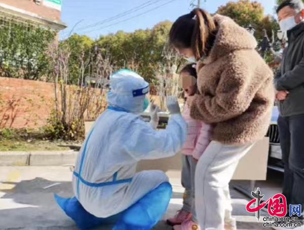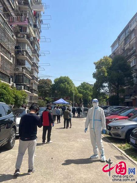 圖片說明:來自江蘇的援滬醫務人員在為小區居民做核酸。(圖片由受訪者提供)