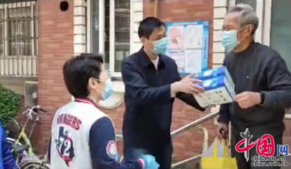 圖片說明:志愿者為獨居老人送來居民們捐贈的愛心物資。(圖片由受訪者提供)