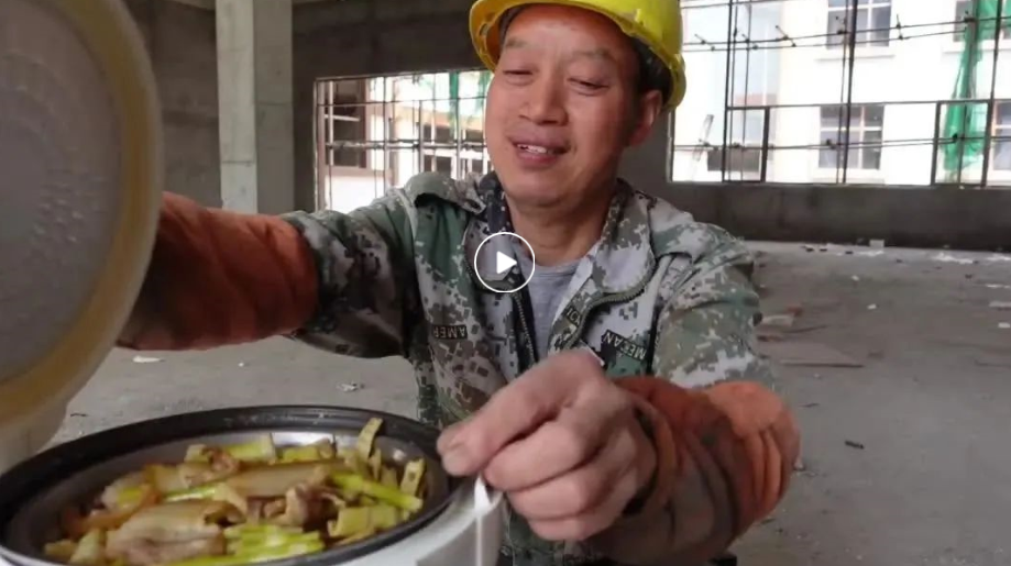 沒有高超的拍攝技巧,沒有高級的攝影設備,一口川音,兩張帶著汗水的笑臉。只是用最簡單的方式記錄自己的生活日常,“農民工川哥”卻在全網慢慢積累了近200萬粉絲。 汗流浹背的勞動后,干飯是最香的。工地毛坯房里,磚頭墊成凳子,木頭箱子當桌子,一口熱氣騰騰的電飯鍋,一盆油水十足的炒肉,面前半米是三腳架上的相機。
