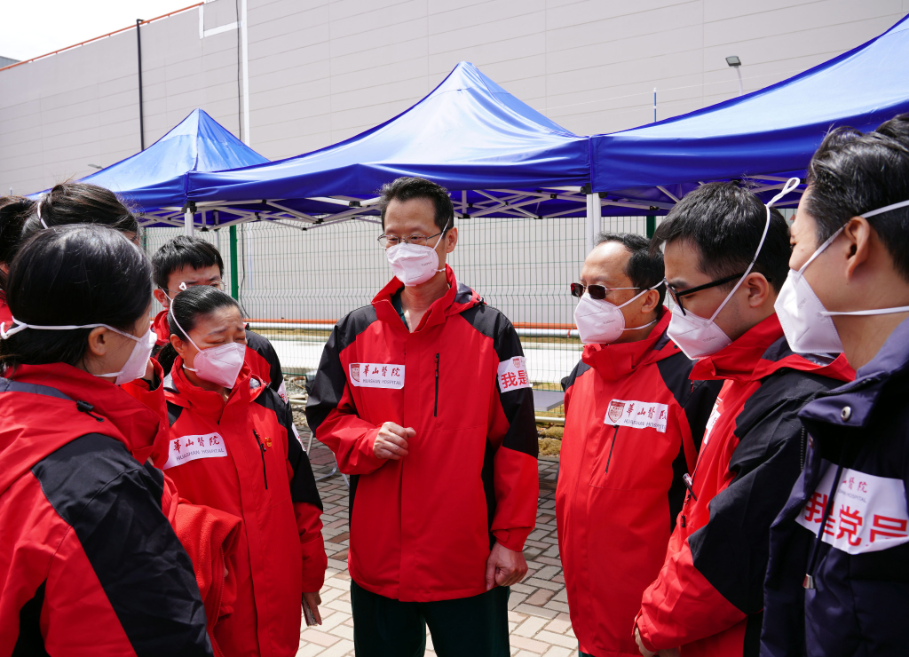 從4月5日開始接受第一批感染者至今,這里一直處在忙碌狀態,最多一天入院人數超過6000人。“我們提出要有‘三熱一凈’的目標,也就是熱飯、熱水、熱被窩,以及廁所干凈,而且一定要讓感染者隨時看到醫護人員。”馬昕說,對于來到陌生環境的患者來說,隨時都能看到醫護人員在,會讓他們安心。