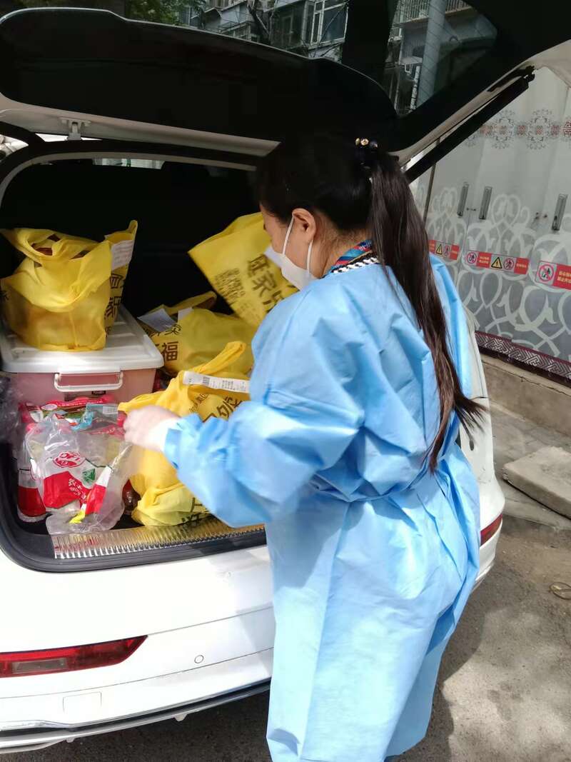 杜娟給封控社區送貨。(受訪者供圖)