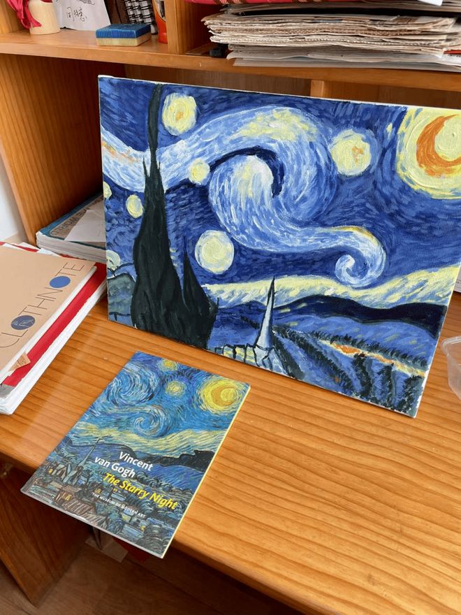 就送給奶奶一幅她自己畫的《星月夜》
