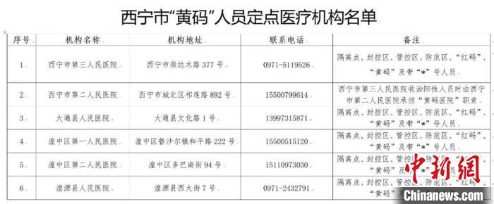 圖為西寧市“黃碼醫院”人員定點醫療機構名單。 西寧市新冠肺炎疫情防控處置工作指揮部供圖