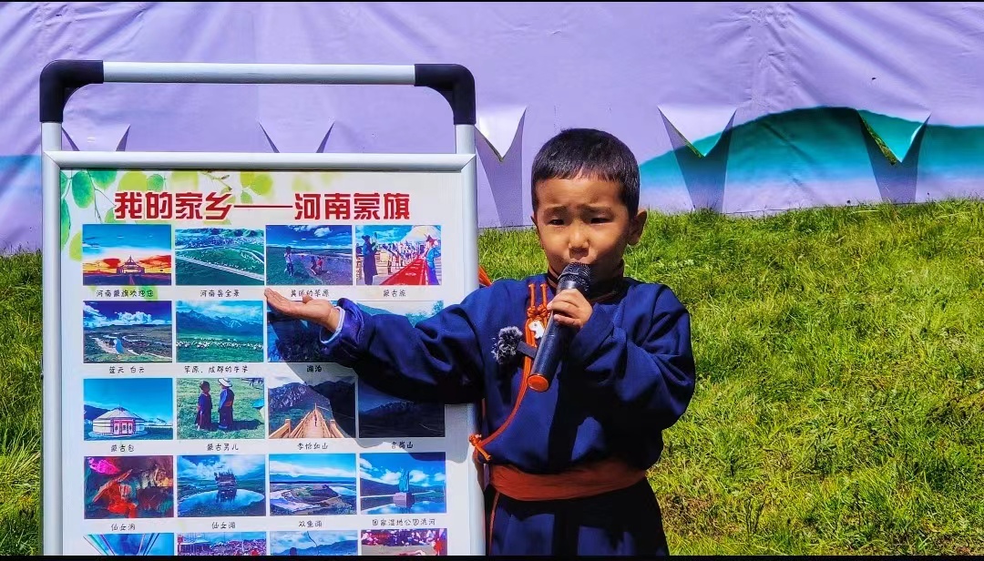 青海新聞網·大美青海客戶端訊 (記者 李娜楊紅霞報道) “我的家鄉在中國西部,這里有一片非常美麗的大草原,大家都喜歡叫她‘河南蒙旗’,這里有藍天、白云、草原、牛羊、湖泊、河流……”來自黃南藏族自治州河南蒙古族自治縣中心幼兒園五歲半的觀卻東珠作為“講解員”,正聲情并茂的向老師、同學以及家長介紹自己的家鄉。