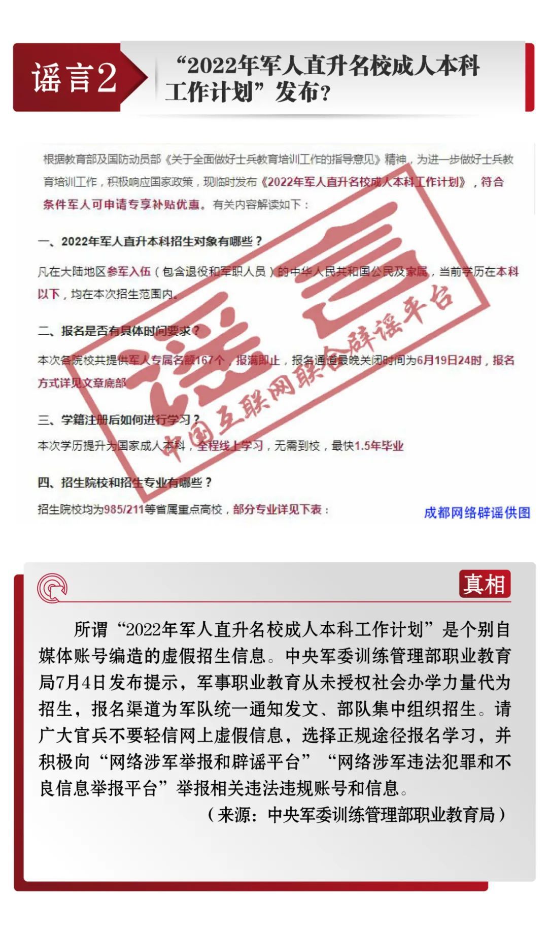 散布招錄虛假信息,實則詐騙取財。當前正值高考招生錄取階段,個別機構和個人發(fā)布虛假招生信息,比如“2022年軍人直升名校成人本科工作計劃發(fā)布”“高校招生有內部指標,可實現(xiàn)低分高錄”等,以及假冒北京理工大學、中南林業(yè)科技大學、青島大學等正規(guī)大學發(fā)布虛假招生廣告,利用網(wǎng)民在軍事職業(yè)教育和高校招生方面的知識盲區(qū),偽造政策內容,虛構招生計劃。此外,諸如名為“河南傳媒大學”等“野雞大學”也趁機冒頭,使用與正規(guī)高校相似的校名,仿冒正規(guī)高校官網(wǎng)信息,實施偽裝,騙取考生和家長的信任,以達到騙取錢財?shù)哪康摹?/p>