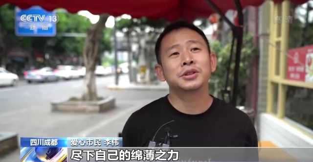 愛心市民 李偉:也想參與一下,盡下自己的綿薄之力,為在高溫酷暑下工作的環衛工人、外賣小哥獻一點愛心。今天看到那么多水,獻愛心的人還比較多。
