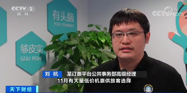 某訂票平臺公共事務(wù)部高級經(jīng)理 劉杭:11月有大量低價機票供旅客選擇,裸票價格低于200元。