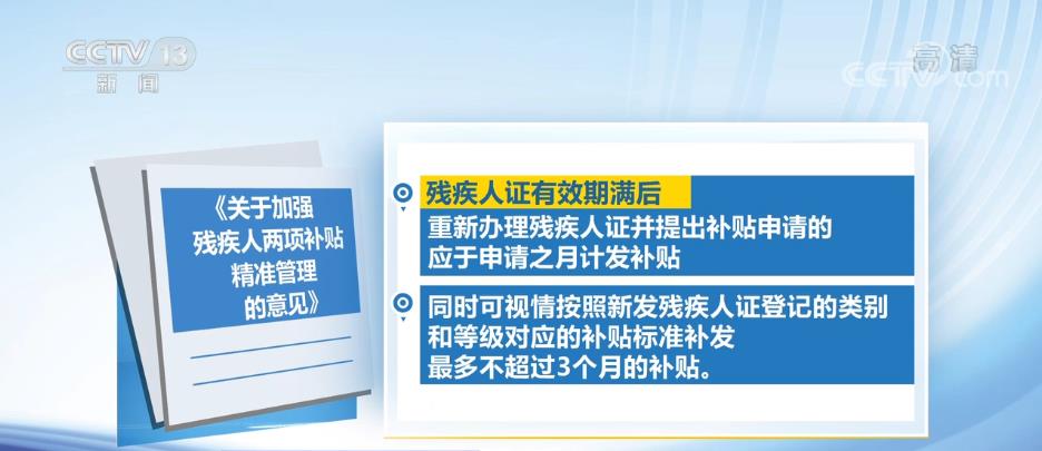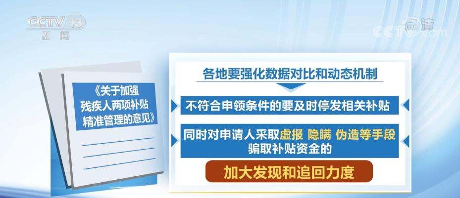 央視網消息:近日,民政部、財政部、中國殘聯印發《關于加強殘疾人兩項補貼精準管理的意見》,進一步提高困難殘疾人生活補貼和重度殘疾人護理補貼制度實施的精準性、科學性、規范性,《意見》從下發之日起實施。