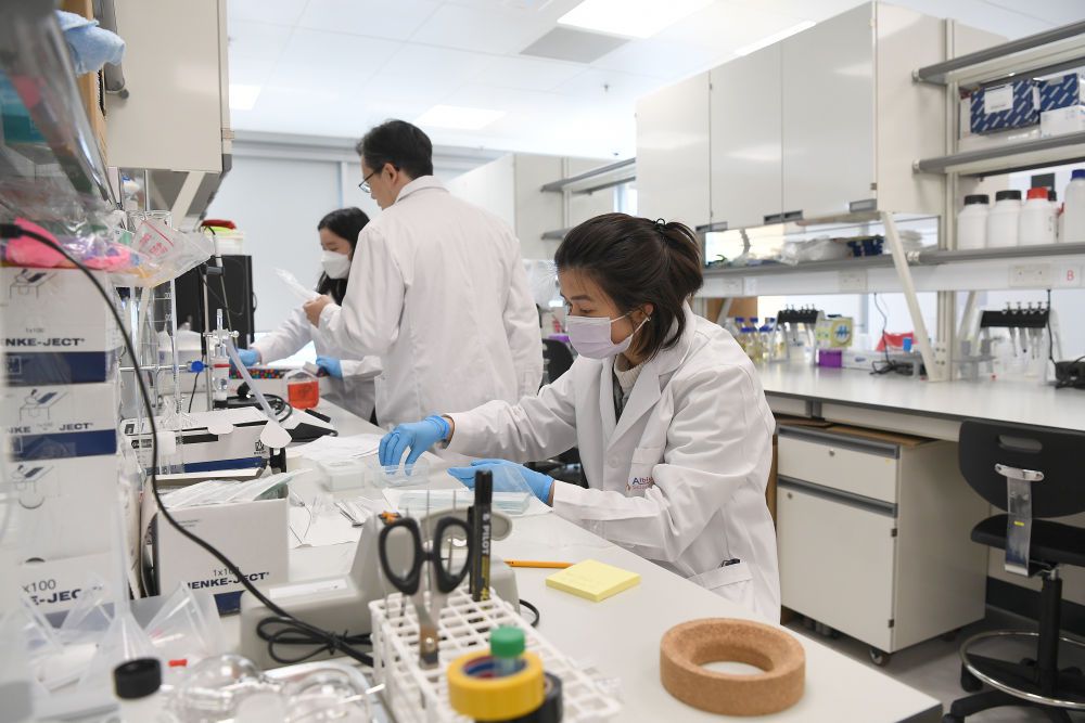 3月3日,工作人員在香港科學園生物醫藥科技培育計劃 (Incu-Bio) 共享實驗室工作。 新華社記者 陳鐸 攝