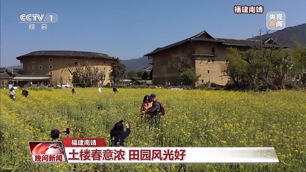 這兩天,福建省南靖縣土樓景區(qū)的油菜花競相開放。成片的油菜花與土樓交相輝映,游客們在花海中漫步,陶醉其中,盡情享受怡人的田園風(fēng)光。