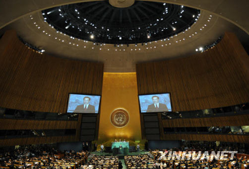 9月22日,聯(lián)合國氣候變化峰會在紐約聯(lián)合國總部舉行,國家主席胡錦濤出席峰會開幕式。新華社記者 申宏 攝