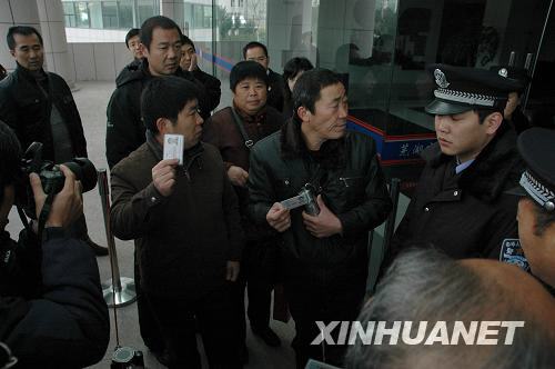 11月19日,被害人家屬等人手持身份證要求進入法庭旁聽被拒絕。新華社記者 程士華 攝