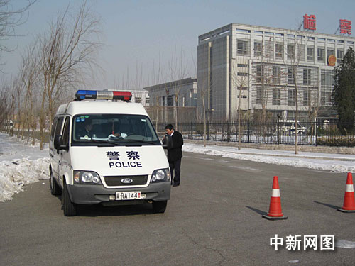 距離該案庭審現場,廊坊開發區法院大審判廳一千米外路口,警方已設立警戒線嚴禁無關人員進入。