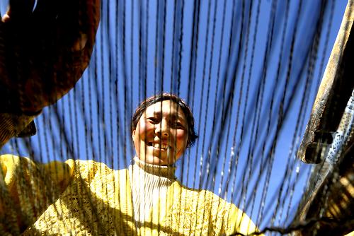 1月20日,西藏拉薩堆龍德慶縣德慶鄉邱桑村村民卓嘎在家編制氆氌墊。2009年,西藏各級政府加大涉農資金投入力度,落實農牧業增產增效綜合措施,開辟農牧民增收新渠道,使西藏農牧民人均收入預計達到3598元,比上年增長13%,連續7年保持兩位數增長。 新華社記者 普布扎西 攝