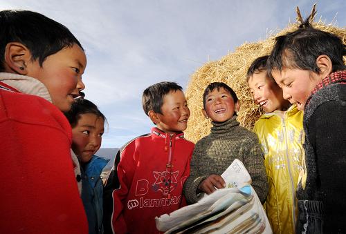 1月18日,西藏達孜縣幫堆鄉幾個孩子在一起復習功課。據了解,2009年,西藏第8次提高了旨在幫助農牧區貧困中小學生接受教育的“三包”經費標準,年生均達到1800元,受益學生27萬人。為加快發展西藏教育事業,國家從1985年起在西藏農牧區中小學開始實施“三包”和助學金制度。根據規定,對農牧民子女住校生包吃、包住、包學習費用,對優秀學生發放獎學金,對普通高中農牧民子女住校和義務教育階段學校農牧民子女走讀發放助學金。新華社記者 覺果 攝