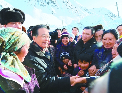 溫家寶總理一直關心著新疆的發(fā)展和民生的改善。這次北疆的雪災,更牽動著他的心,他說:“我惦念著災區(qū)的各族群眾,一定要去看看,群眾生產生活安置好了才安心。”