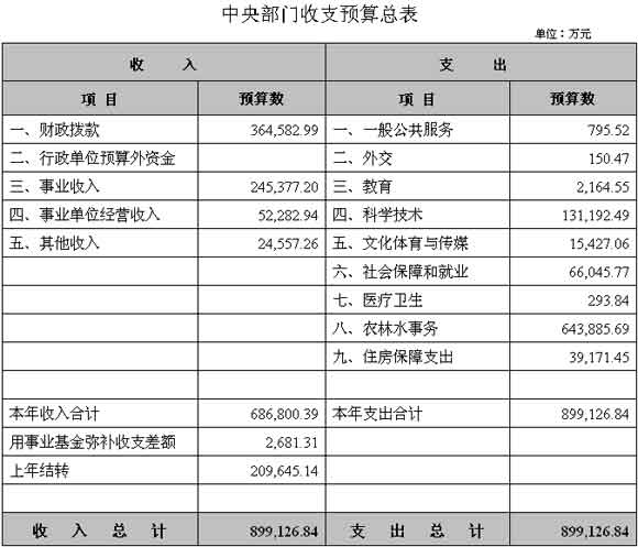 水利部2010年收支預算總表