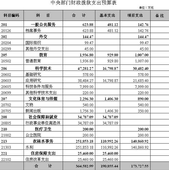 水利部2010年財政撥款支出預算表