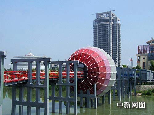 淮安南北分界標(biāo)志:南面用紅色象征南方亞熱帶氣候特征。圖片來源:中新網(wǎng)