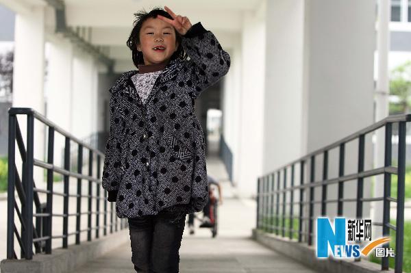 這是在地震中失去右臂的都江堰友愛學校一年級女孩李瑤(5月7日攝)。汶川地震災區的孩子們,災難過去兩年了,你們可曾知道,全國人民對你們的牽掛從未停止過。來吧,面向鏡頭,讓關心你們的人看看你們自信的笑臉吧…… 新華社記者鄭悅攝