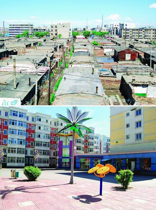圖為棚戶區改造前后對照資料圖片