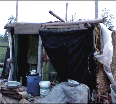 在廣平縣城郊的焦莊村,有一個用竹子、草簾和塑料布搭成的不足10平方米的窩棚,女主人名叫李運得,她與丈夫擠住在這里,孩子借住在別人家。