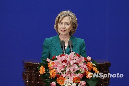 5月24日,第二輪中美戰略與經濟對話在北京開幕,美國總統奧巴馬的特別代表、國務卿希拉里·克林頓出席開幕式并講話。 中新社發 盛佳鵬 攝