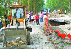 日前,在廣西來賓市興賓區橋鞏鄉,推土機在搶修來賓市至合山市的二級公路。廣西自治區交通廳最近數據顯示,受強降雨影響,造成廣西113公路交通中斷,其中國道3條、省道1條、縣道52條,其它通鄉通村公路57條,經全力搶修,目前已搶通公路71條。新華社發