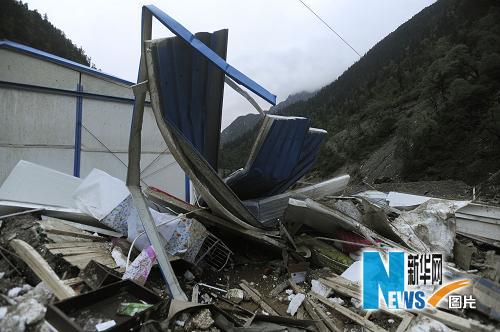 6月15日,山體垮塌后的工棚面目全非。新華社記者 江宏景 攝