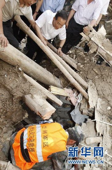 上午09時許,我跟隨溫家寶總理和回良玉副總理來到受災最嚴重的三眼峪。總理踩著淤泥和碎石,一步一步艱難的察看著災情,隨時向正在搶險的解放軍指戰員、武警官兵負責人詢問搶險的進度,鼓勵大家,并向大家表示慰問。后來,總理執意要徒步走到白龍江的江邊看看。從三眼峪到白龍江江邊這段路是最危險的。